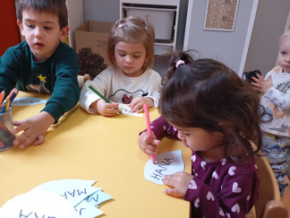 U mjesecu veljači s djecom se u skupinama obilježio " Dan močvara "; obje su skupine na tu temu izradile skupne radove. Jaslička djeca izradila su i skupni rad na temu " zimsko vrijeme ". Kroz temu " prijateljstva " u skupinama uvijek obilježimo i " Sv.Valentina ". Djeca su crtala svoje najbolje prijatelje/ice, izradila su " stablo prijateljstva ", otiskivala zajedno svoje dlanove, pjevali smo pjesmice o prijateljstvu, čitali slikovnice i priče...
